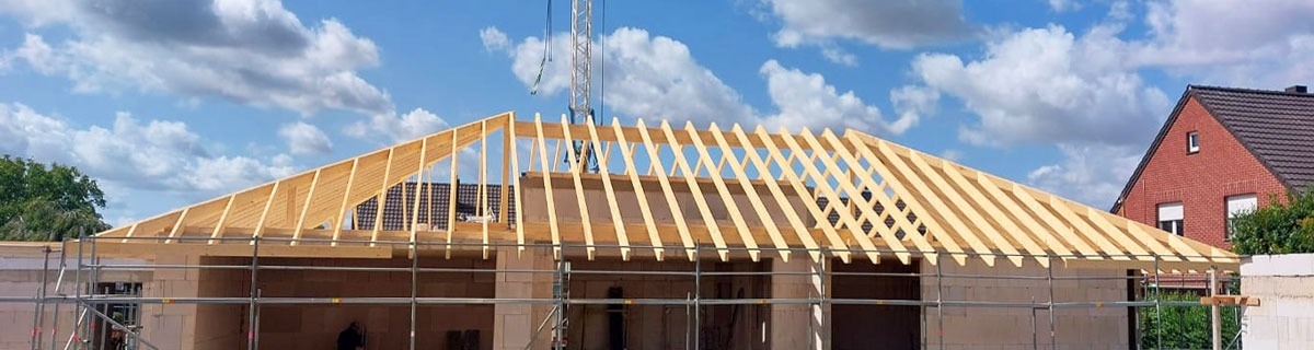 NRW · Region Kreis Mönchengladbach · Erkelenz · Für dieses Projekt wünschte sich der Kunde vor allem eines: ein schnelles Aufmaß und ein ebenso schnelles Angebot. Die Zeit war knapp, und der Aufbau sollte in Eigenleistung erfolgen. Da der Bauherr kein gelernter Zimmermann ist, kam es besonders auf eine präzise Planung und klare Kennzeichnung aller Bauteile an.